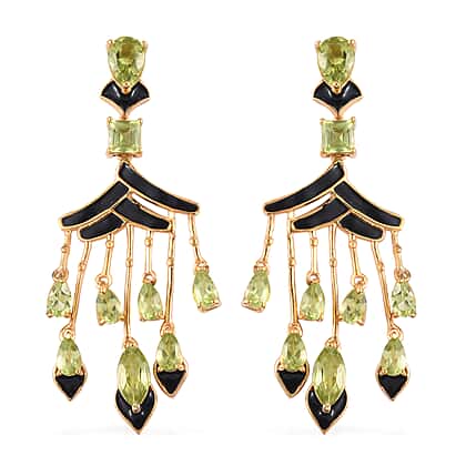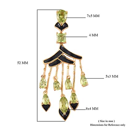 6 Carat AA Hebei Peridot Enamelled Chandelier Earrings in Gold Plated Sterling Silver