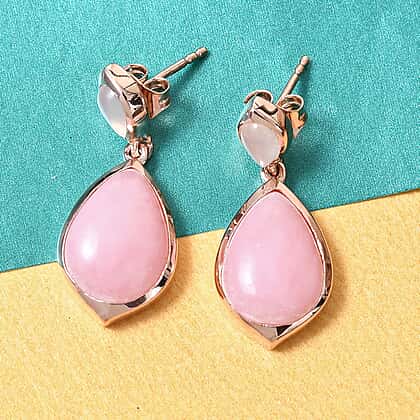 Sundays Child 9.25 ct AA Peruvian Pink Opal and Sri Lankan Silver Moonstone Drop Earrings in Rose Gold Plated Sterling Silver