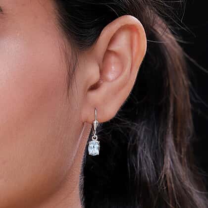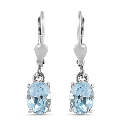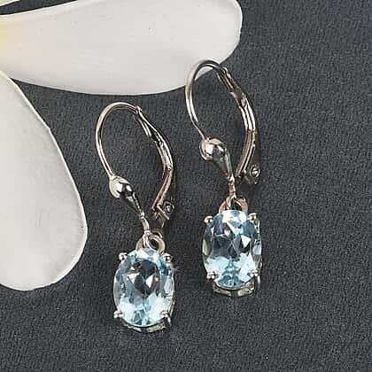 AA Sky Blue Topaz (Ovl) Lever Back Earrings in Platinum Overlay Sterling Silver 2.96 Ct.