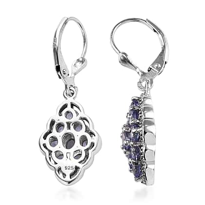 2.25 Ct Tanzanite Cluster Drop Earrings in Platinum Plated Sterling Silver 4.26 Grams
