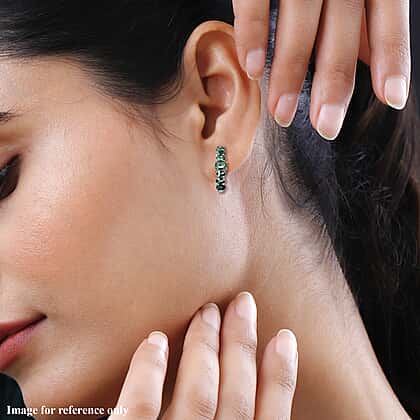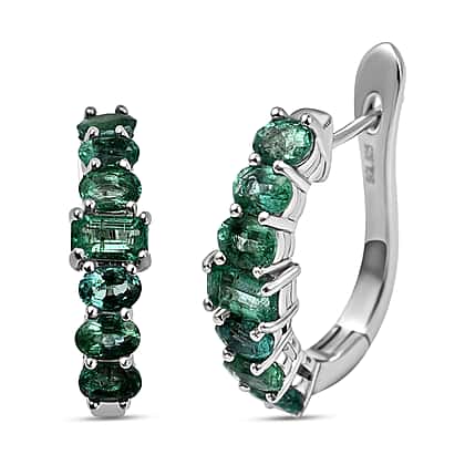 AAA Gemfields Emerald Hoop Earrings in Rhodium Overlay Sterling Silver 2.46 Ct