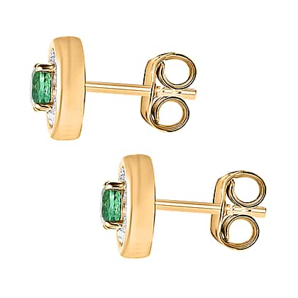 AAA Gemfields Emerald & Moissanite Earrings in 18K Yellow Gold Vermeil Plated Sterling Silver