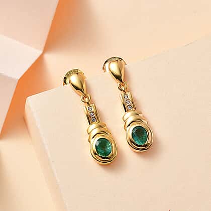 AAA Gemfields Emerald & Natural Zircon Dangle Earrings in 18K Gold Vermeil Sterling Silver