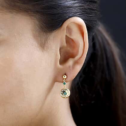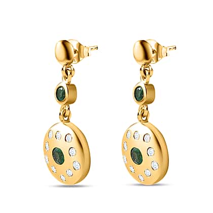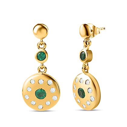 AAA Gemfields Emerald & Natural Zircon Dangle Earrings in 18K Yellow Gold Vermeil Plated Sterling Silver