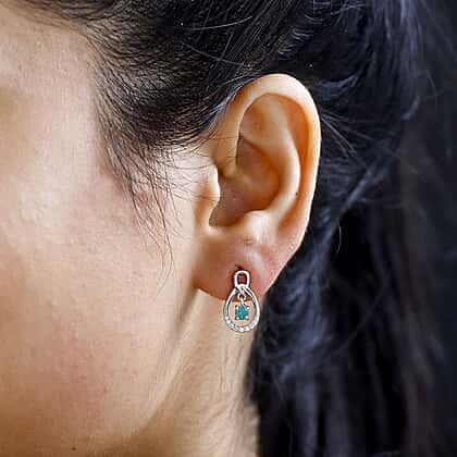 AAA Gemfields Emerald & Natural Zircon Dangle Earrings in Platinum Overlay Sterling Silver
