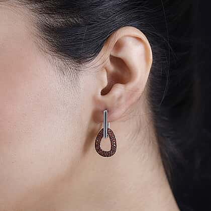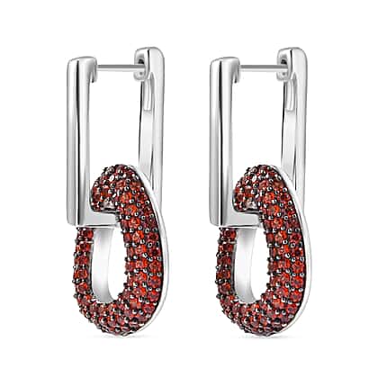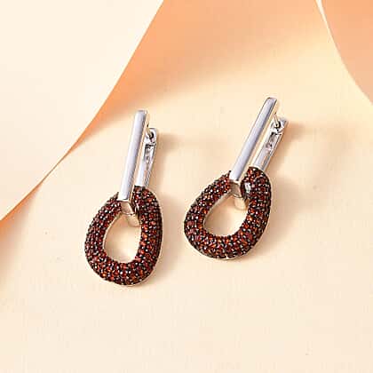 Red Garnet Fancy Earrings in Rhodium Overlay Sterling Silver
