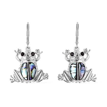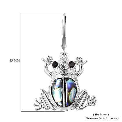Abalone Shell and Black Austrian Crystal Frog Earrings in Stainless Steel