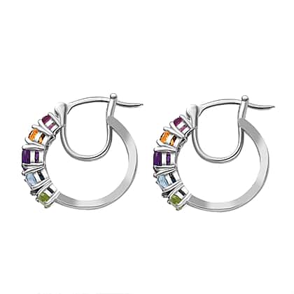 African Amethyst , Multi gemstones J Hoop Half Hoop Earring in Platinum Overlay Sterling Silver 3.60 ct 3.180 Ct.