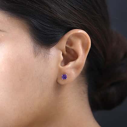 Amethyst Solitaire Stud Earrings with Push Back in Platinum Overlay Sterling Silver 1.38 Ct