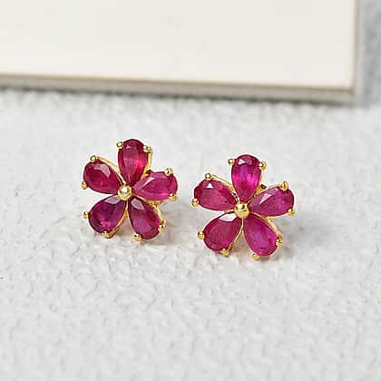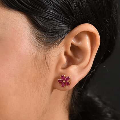 African Ruby Earring in 14K Gold OverlaySterling Silver 2.870 Ct.