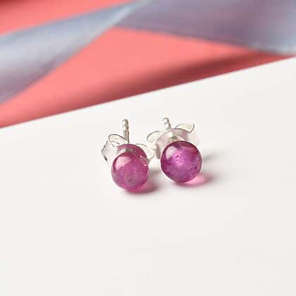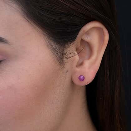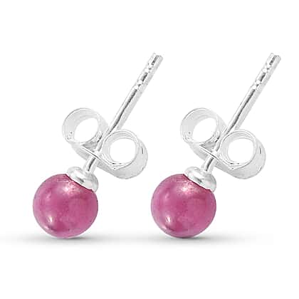 African Ruby (FF) Ball Stud Earrings (with Push Back) in Sterling Silver