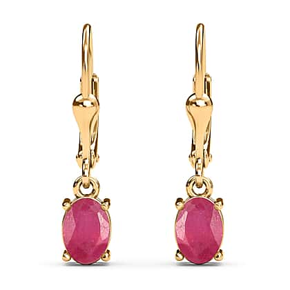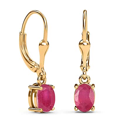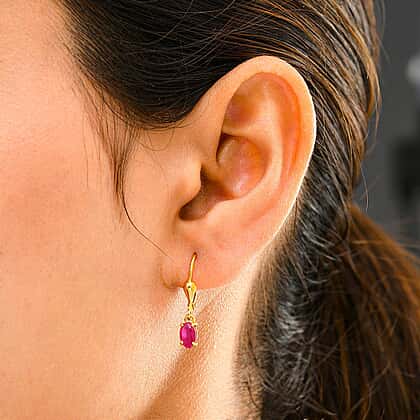 African Ruby (FF) Lever Back Earrings in 18K Vermeil Yellow Gold Plated Sterling Silver 2.00 Ct.