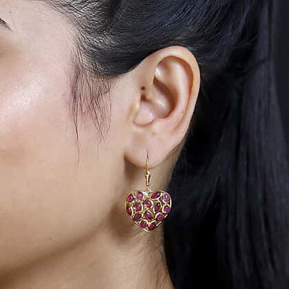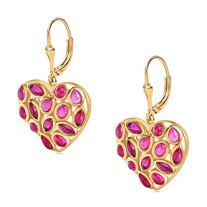 African Ruby Heart Earrings in 18K Vermeil YG Plated Sterling Silver 7.25 Ct.