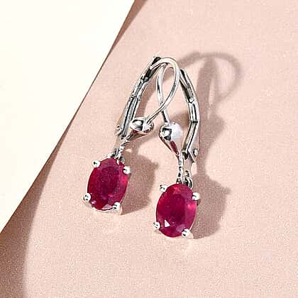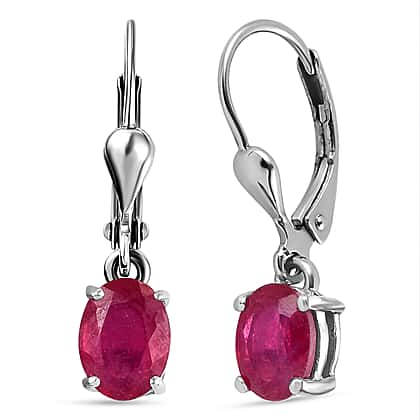 African Ruby Lever Back Earrings in Platinum Overlay Sterling Silver 1.54 Ct.