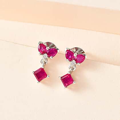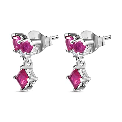 African Ruby & Natural Zircon Dangle Earrings in Platinum Overlay Sterling Silver 2.10 Ct