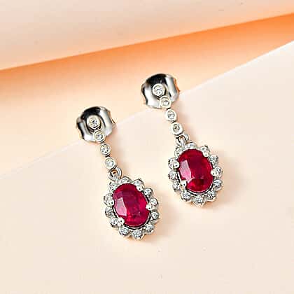 African Ruby & Natural Zircon Dangle Earrings in Platinum Overlay Sterling Silver 2.86 Ct.