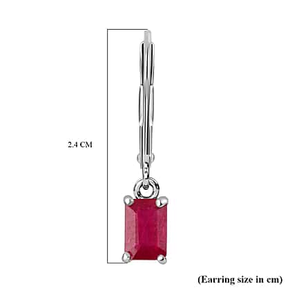 African Ruby (Oct) Lever Back Earrings in Rhodium Sterling Silver 2.0 Ct.