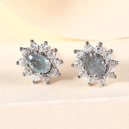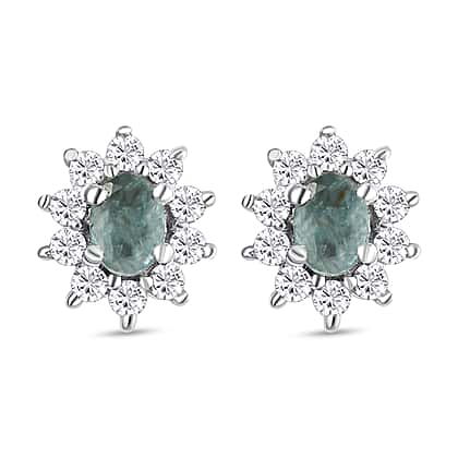 Alexandrite and Natural Cambodian Zircon Stud Earrings in Platinum Plated Sterling Silver