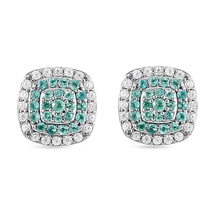 Alexandrite and Natural Cambodian Zircon Stud Earrings in Platinum Plated Sterling Silver