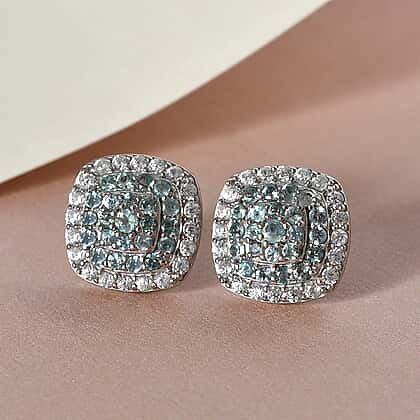 The stud earrings are crafted in cluster design studded with round Alexandrite in a faceted cut. The Alexandrite is known for its colour change variety chrysoberyl. The gemstone is studded in the centre along with two rows settling in a square frame of platinum plated sterling silver. The Natural Cambodian Zircon is placed around the gemstone in a row creating a boundary. The Zircon is settled in a prong setting.