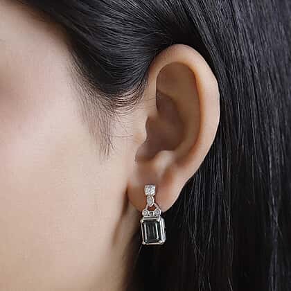 Alexandrite Triplet Quartz, White Zircon Drop Earrings in Rhodium Overlay Sterling Silver