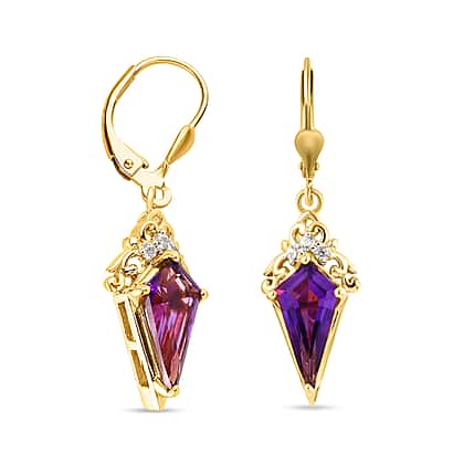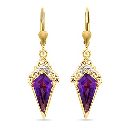 Amethyst Dangle Earrings with Natural Cambodian Zircon in Yellow Gold Plated Sterling Silver 4.08 Ct.