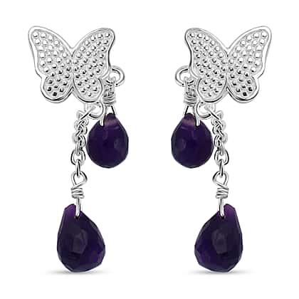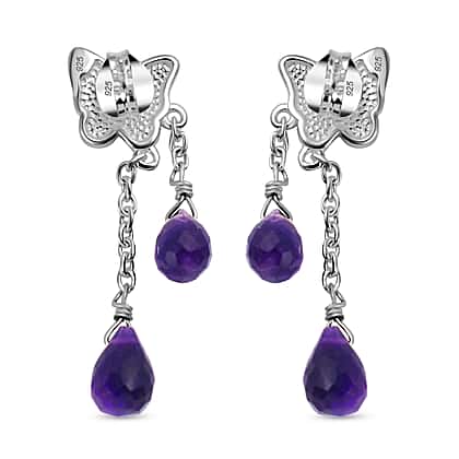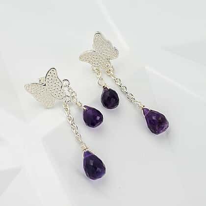 Amethyst Butterfly Dangle Earrings in Sterling Silver 8.50 Ct