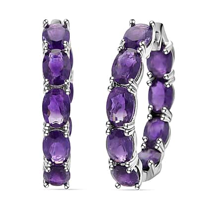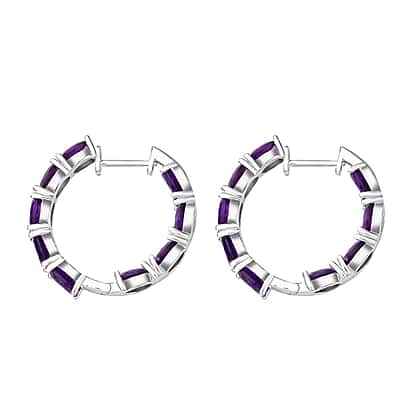 Amethyst Hoop Earrings (with Clasp) in Rhodium Overlay Sterling Silver 12.17 Ct, Silver Wt. 5.50 Gms