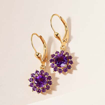 Floral Amethyst Earrings in Gold Plated Sterling Silver 2.28 Ct.