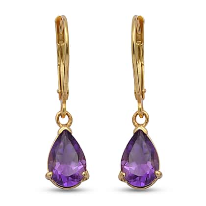 2.32 Ct Amethyst Solitaire Drop Earrings in Gold Plated Sterling Silver