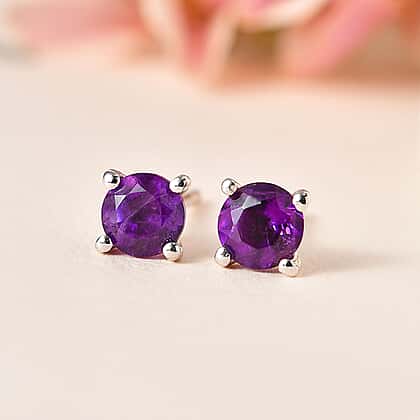 Amethyst Solitaire Stud Earrings in Platinum Overlay Sterling Silver