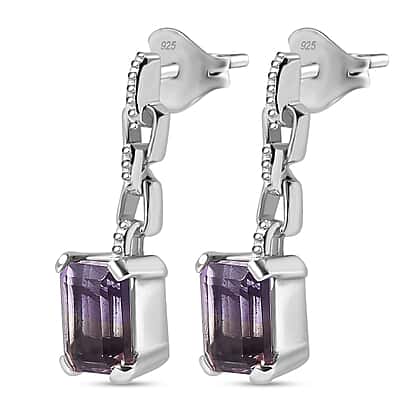 Ametrine Solitaire Dangle Earrings in Rhodium Overlay Sterling Silver 3.83 Ct.