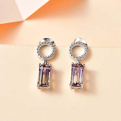 Ametrine Solitaire Earrings in Rhodium Overlay Sterling Silver 1.70 Ct