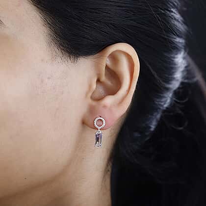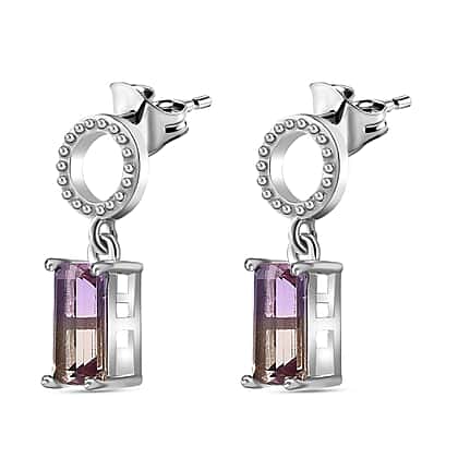 Ametrine Solitaire Dangling Earrings in Rhodium Overlay Sterling Silver 1.70 Ct