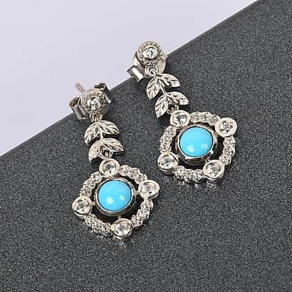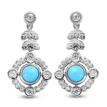 Arizona Sleeping Beauty Turquoise and Natural Cambodian Zircon Dangle Earrings (with Push Back) in Platinum Overlay Sterling Silver 1.57 Ct.