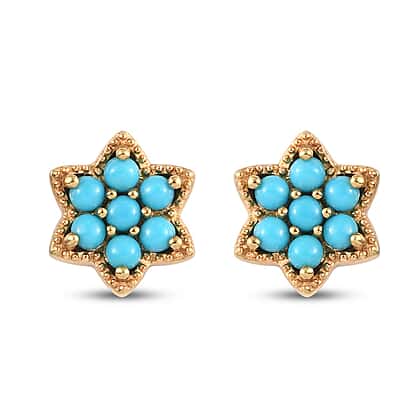 Arizona Sleeping Beauty Turquoise Cluster Stud Earrings (with Push Back) in 14K Gold Overlay Sterling Silver 1.050 Ct.