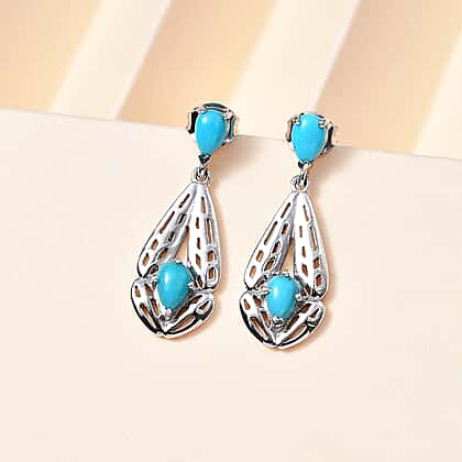 Step inside the world of Arizona Sleeping Beauty Turquoise Dangle Earrings which feature the rarest variety of blue gemstones. The earrings crafted in Platinum Overlay Sterling Silver have a modern design studded with two turquoise pears. The art is modern and the combination of sky blue and white metal is simply breathtaking.