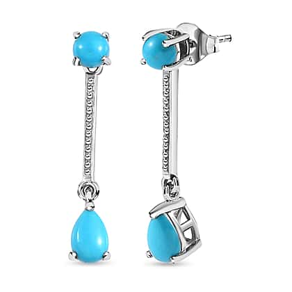 Arizona Sleeping Beauty Turquoise Dangling Earrings (with Push Post) in Platinum Overlay Sterling Silver 1.45 Ct