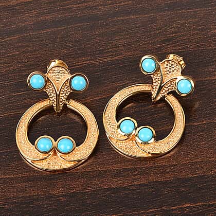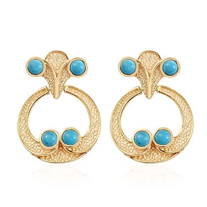 2.25 Ct Arizona Sleeping Beauty Turquoise Drop Earrings in 14K Gold Plated Sterling Silver