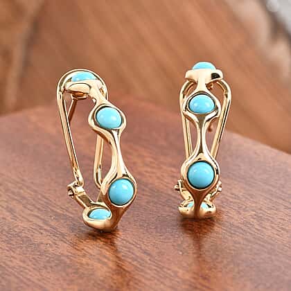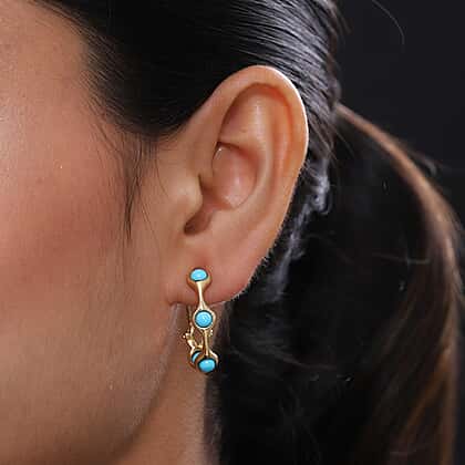 2.02 Ct Sleeping Beauty Turquoise Earring in 14K Gold Plated Sterling Silver