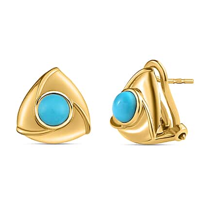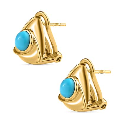 Arizona Sleeping Beauty Turquoise Earrings (with French Clip) in 18K Yellow Gold Vermeil Plated Sterling Silver 1.03 Ct
