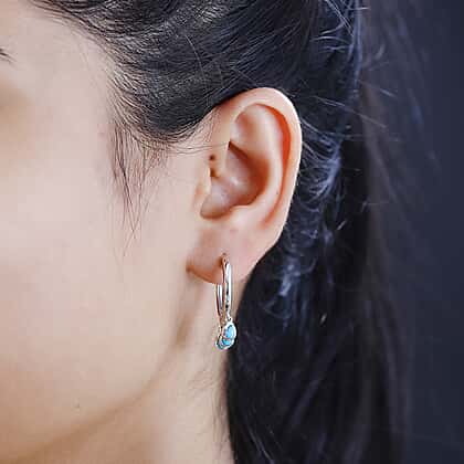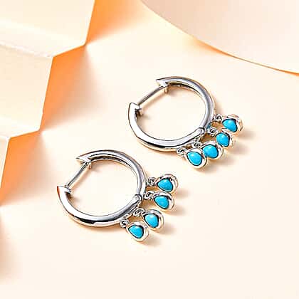 Arizona Sleeping Beauty Turquoise Hoop Earrings in Platinum Overlay Sterling Silver 1.15 Ct, Silver Wt. 5.45 Gms