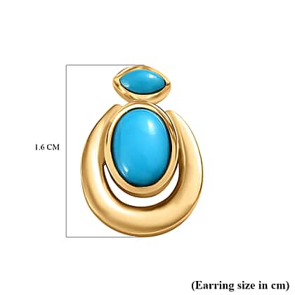 Arizona Sleeping Beauty Turquoise Stud Earrings in 18K Yellow Gold Vermeil Plated Sterling Silver 1.74 Ct.