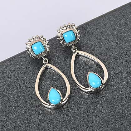 Arizona Sleeping Beauty Turquoise Teardrop Earrings (with Push Back) in Platinum Overlay Sterling Silver 1.410 Ct.