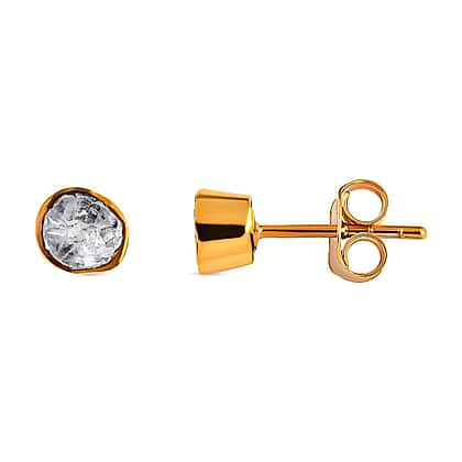 Artisan Crafted 9K Yellow Gold Polki Diamond Stud Earrings