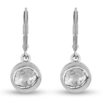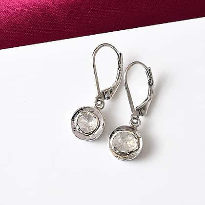 Artisan Crafted Polki Diamond Lever Back Dangle Earrings in Platinum Overlay Sterling Silver 0.50 Ct.