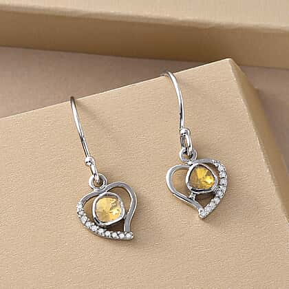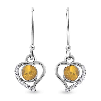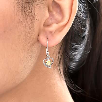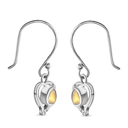 Artisan Crafted Polki Yellow Diamond and White Diamond Earrings (with Hook) in Platinum Overlay Sterling Silver 0.38 Ct.