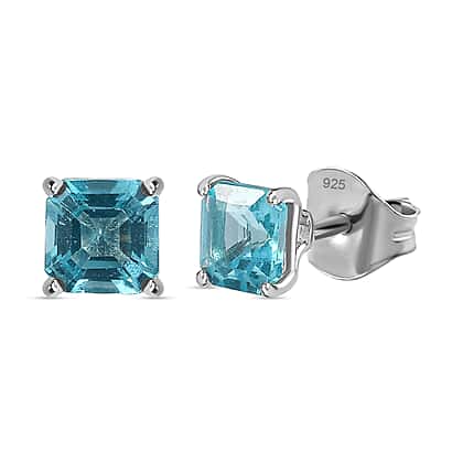 Asscher Cut Blue Apatite Earring in Platinum Overlay Sterling Silver 1.30 Ct.