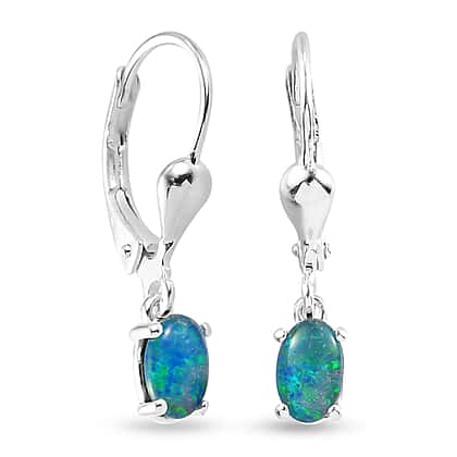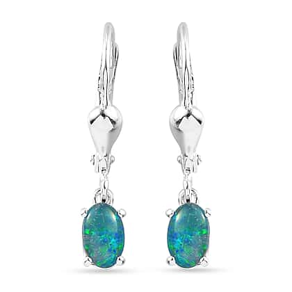 Australian Boulder Opal Solitaire Lever Back Earrings in Sterling Silver