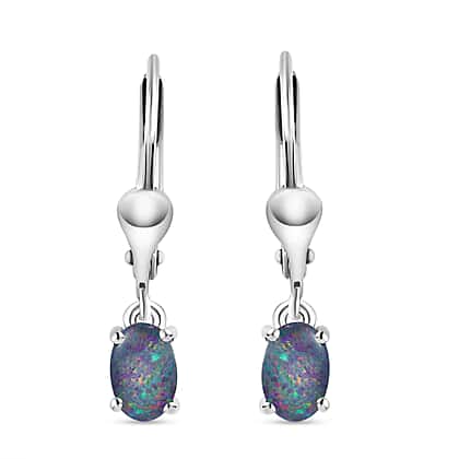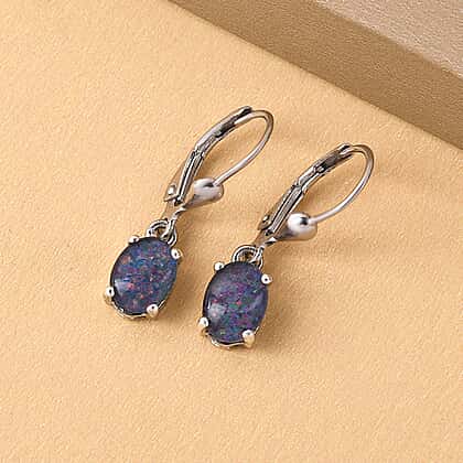 Australian Boulder Opal Triplet Dangling Earrings (With Lever Back) in Platinum Overlay Sterling Silver